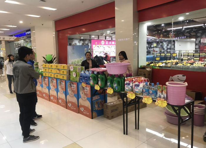 五一勞動節(jié)期間,陽澄鄰里中心聯(lián)合京東超市等入駐商家,在商場一樓大廳舉辦了一場為期三天的特賣活動。