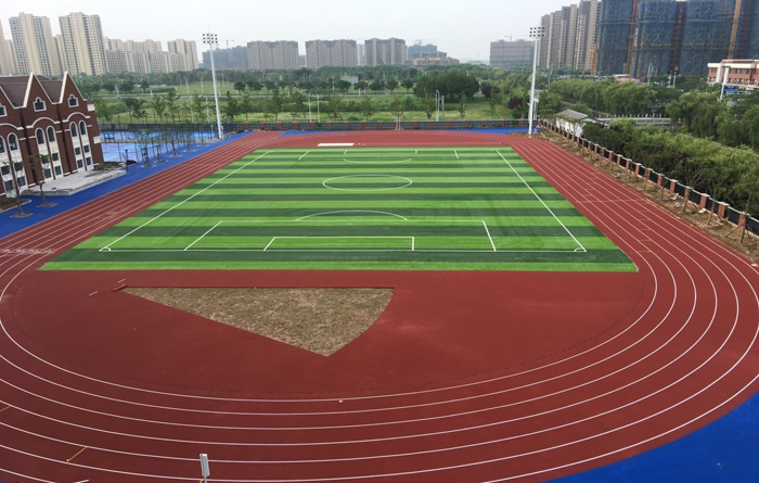 本次體育場(chǎng)地工程主要包括300米塑膠跑道、1個(gè)燈光足球場(chǎng)、3片籃球場(chǎng)和3片排球場(chǎng)。 2018年11月,塑膠跑道國家強(qiáng)制性標(biāo)準(zhǔn)《中小學(xué)合成材料面層運(yùn)動(dòng)場(chǎng)地》GB 36246-2018正式實(shí)施,本體育場(chǎng)地項(xiàng)目從前期的規(guī)劃設(shè)計(jì),到制定參數(shù),到施工過程中的選材用料和現(xiàn)場(chǎng)施工工藝的把控,嚴(yán)格按新國標(biāo)實(shí)施,同時(shí)在校方見證下按要求對(duì)固體顆粒、膠水、PU等材料現(xiàn)場(chǎng)取樣并送至上海專業(yè)檢測(cè)機(jī)構(gòu)進(jìn)行復(fù)測(cè),各項(xiàng)專業(yè)檢測(cè)報(bào)告均合格。在施工過程中狠抓質(zhì)量、盡職盡責(zé),確保環(huán)保、安全、精品,目前項(xiàng)目基本完工,取得了較好的觀感效果,同時(shí)也將為學(xué)校體育教學(xué)和體育活動(dòng)提供了良好的場(chǎng)地條件。