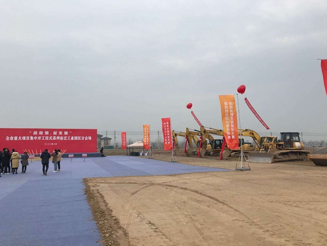 根據(jù)報道,本次宿遷市“戰(zhàn)疫情、促發(fā)展”集中開工項(xiàng)目共計(jì)44個,計(jì)劃總投資329.9億元,年度計(jì)劃完成投資205.6億元,其中蘇宿工業(yè)園區(qū)開工項(xiàng)目6個,總投資24.6億元,年度計(jì)劃投資6.2億元。