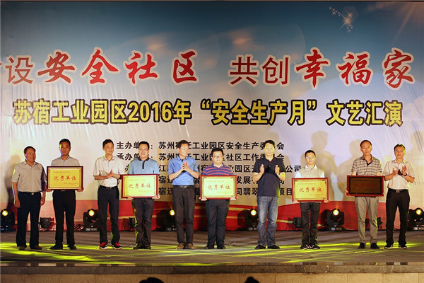 宿遷市安監(jiān)局副局長李巖,工委領導許紹杰、各局辦有關負責人等出席晚會,并為蘇州電瓷廠等榮獲園區(qū)2016年安全生產(chǎn)月活動的優(yōu)秀單位頒獎。